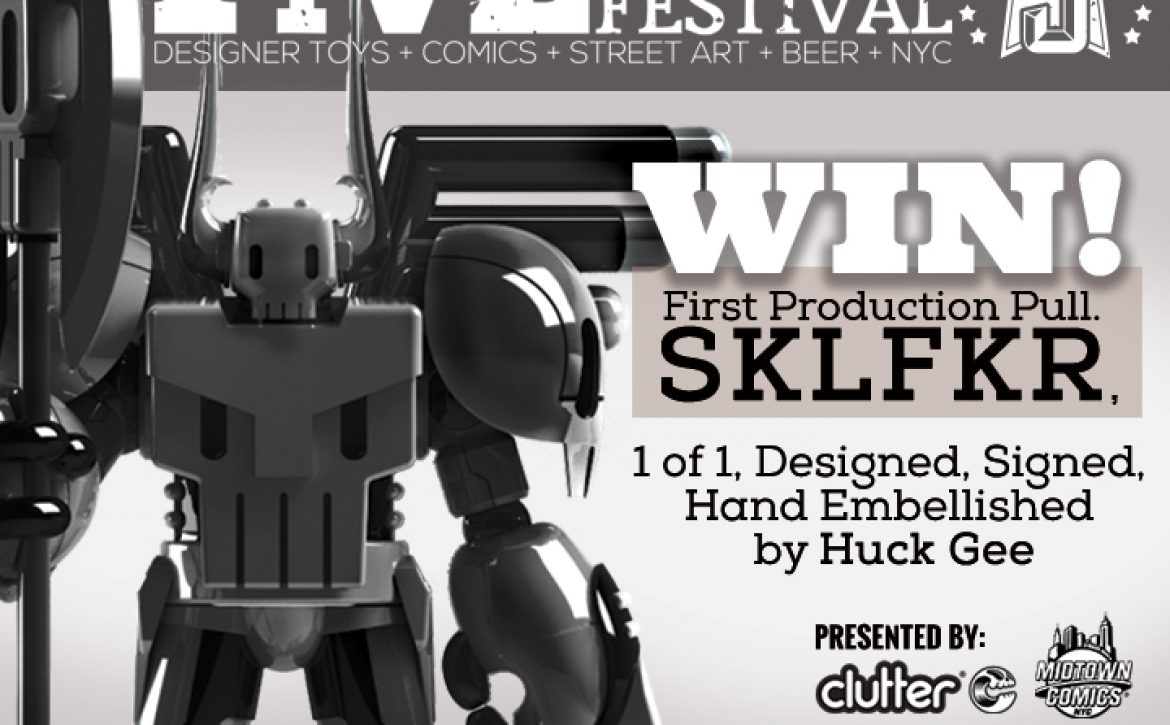 Meet the SKLFKR, a 20″ tall, mecha, skull-laden, resin robot by Huck Gee! Five Points is very excited to give you the opportunity to win a ONE of ONE, first pull of this beast of an art toy!