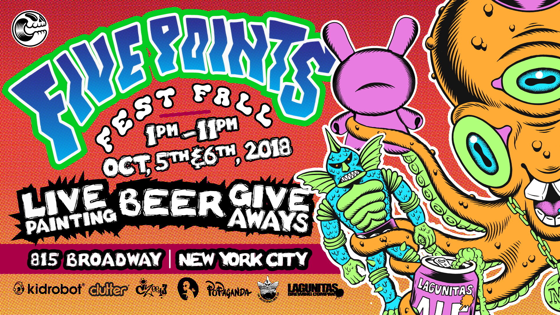Five Points Festival is teaming up with our friends at Kidrobot, Clutter, POPaganda, Martian Toys, Mutant Vinyl Hardcore, Lagunitas and more to party during the weekend of New York Comic Con 2018!